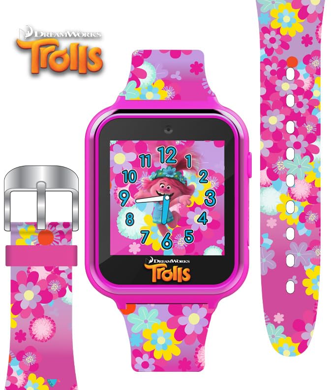 DreamWorks Trolls World Tour Kids Smartwatch with Selfie Video Camera Alarm Stopwatch Games Voice Recorder Calculator Step Calorie Counter Pink Silicone Strap Fits 5.5"-8" Wrists